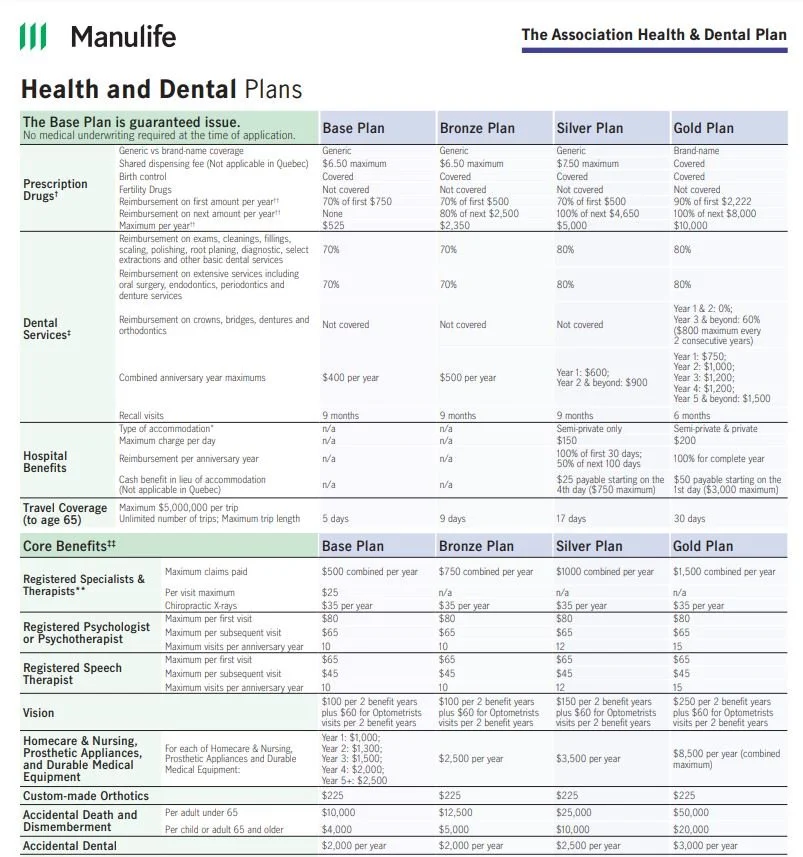 Manulife Health and Dental Comparison Chart
